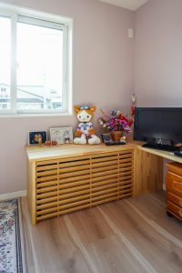 テレビ台の下に床下エアコンを採用いただきました。