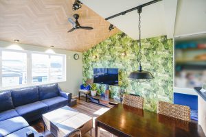 天井の木目やアクセントクロスが効果的です。