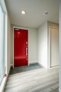 ドアは反対色のレッドでアクセントになっています。
